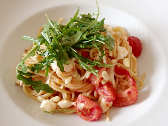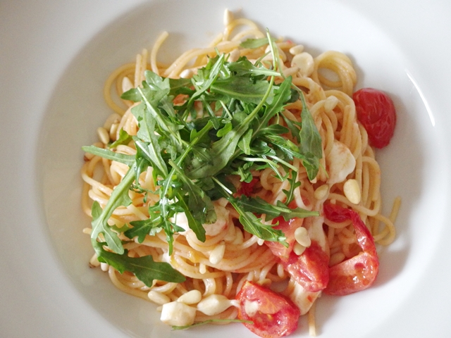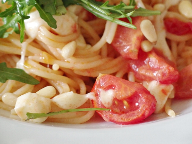 Was haltet ihr denn von meinen “kleinen Verfeinerungen” des Klassikers? Mozzarella, Rucola, Pinienkerne passen doch optimal zum italienischen Pasta-Gericht, meint ihr auch?